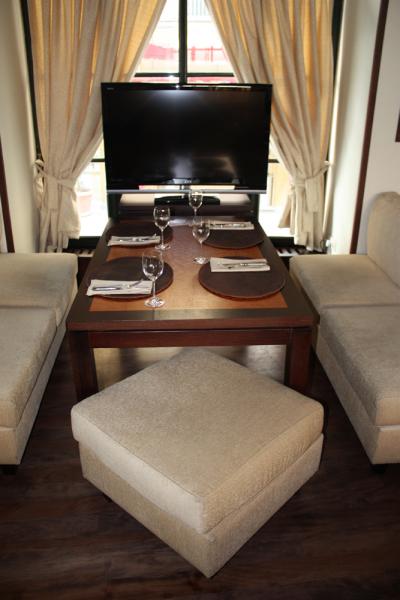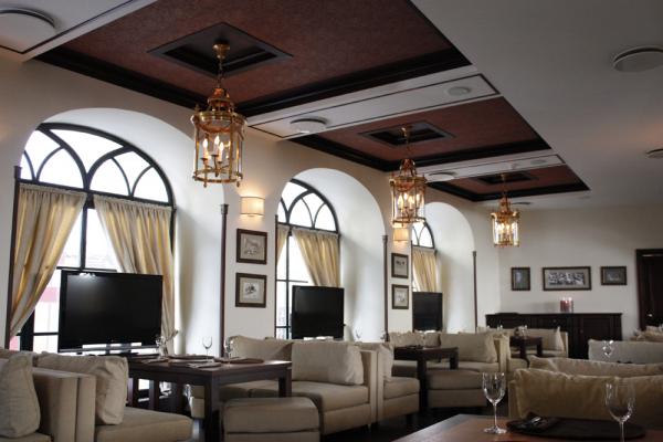 მეორე დარბაზი პირველს გადმოჰყურებს. რბილი დივან-სავარძლები, წყნარი განათება, რაგბის და ფეხბურთის კორიფეების ფოტოები, იდეალურ გარემოს ქმნის დასასვენებლად.